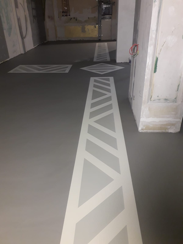 - Ejecución de cenefas con sellado poliuretano bicomponente, mate y coloreado – SIKAFLOOR-305 W.
